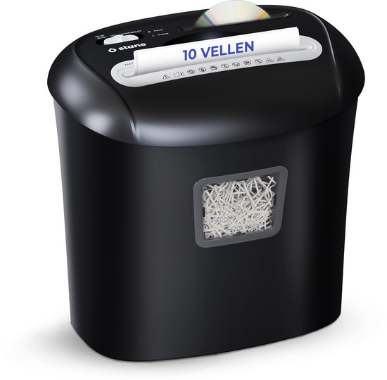 Deze papierversnipperaar van Stane levert veel waar voor je geld. De ruime opvangbak van 21 liter biedt voldoende capaciteit en je kunt tot tien A4-vellen tegelijk versnipperen. Dankzij het cross-cut snijsysteem worden documenten tot kleine, onleesbare snippers verwerkt, en zelfs cd’s en creditcards vormen geen probleem.